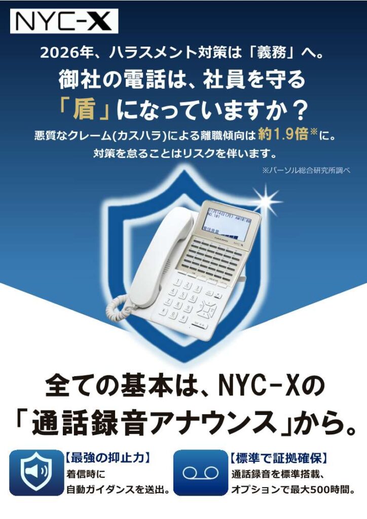 悪質なクレーム(カスハラ)による離職傾向は約1.9倍というデータもあります。対策をしていないこと自体が、経営リスクになる時代です。では、御社の電話はどうでしょうか?